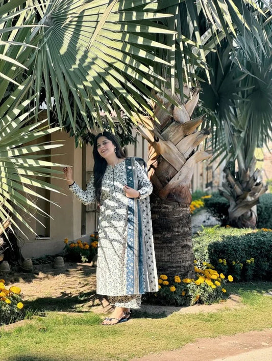 3 Piece Pure Lawn Stitch Suit with Farshi Shalwar 202