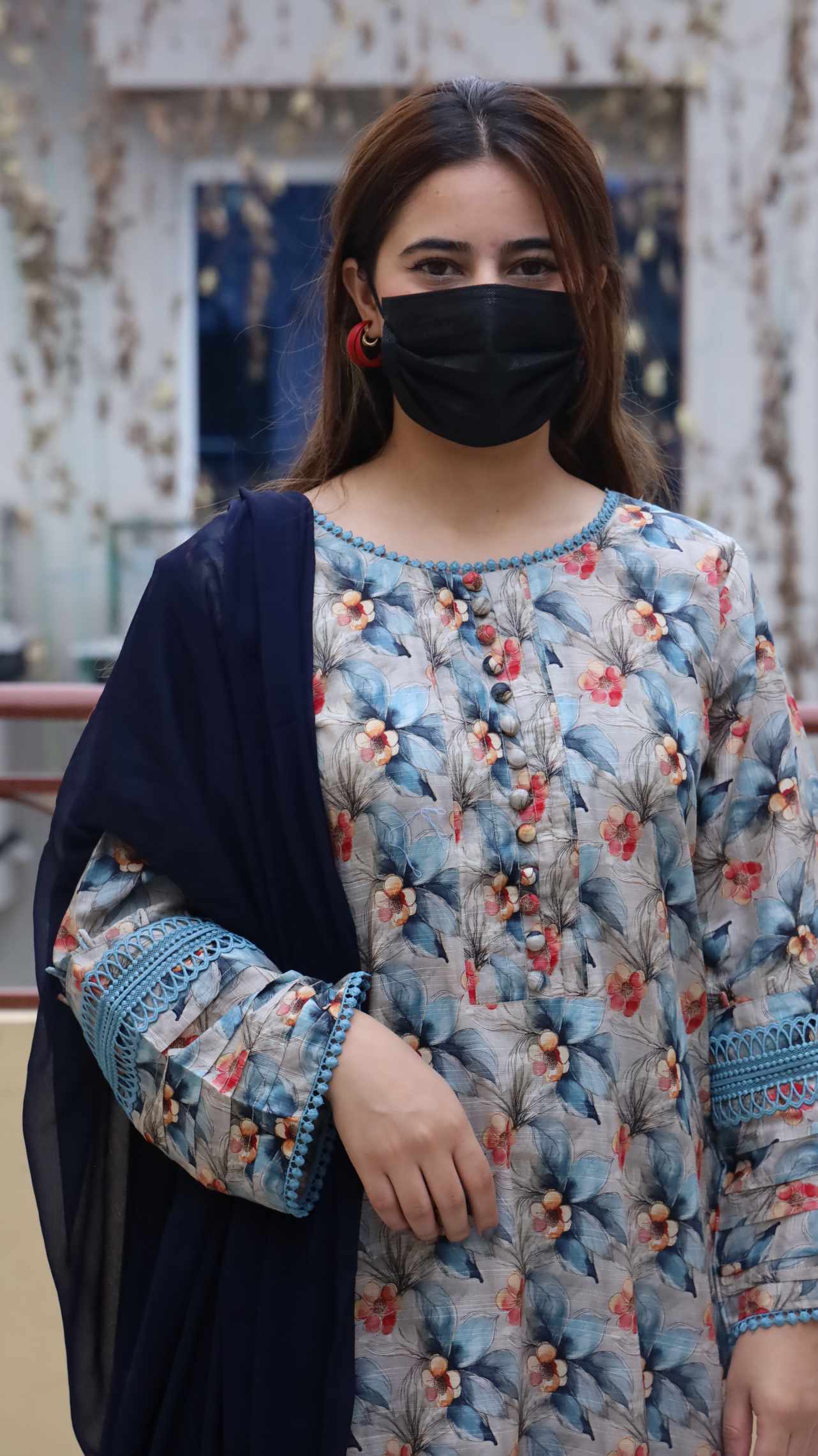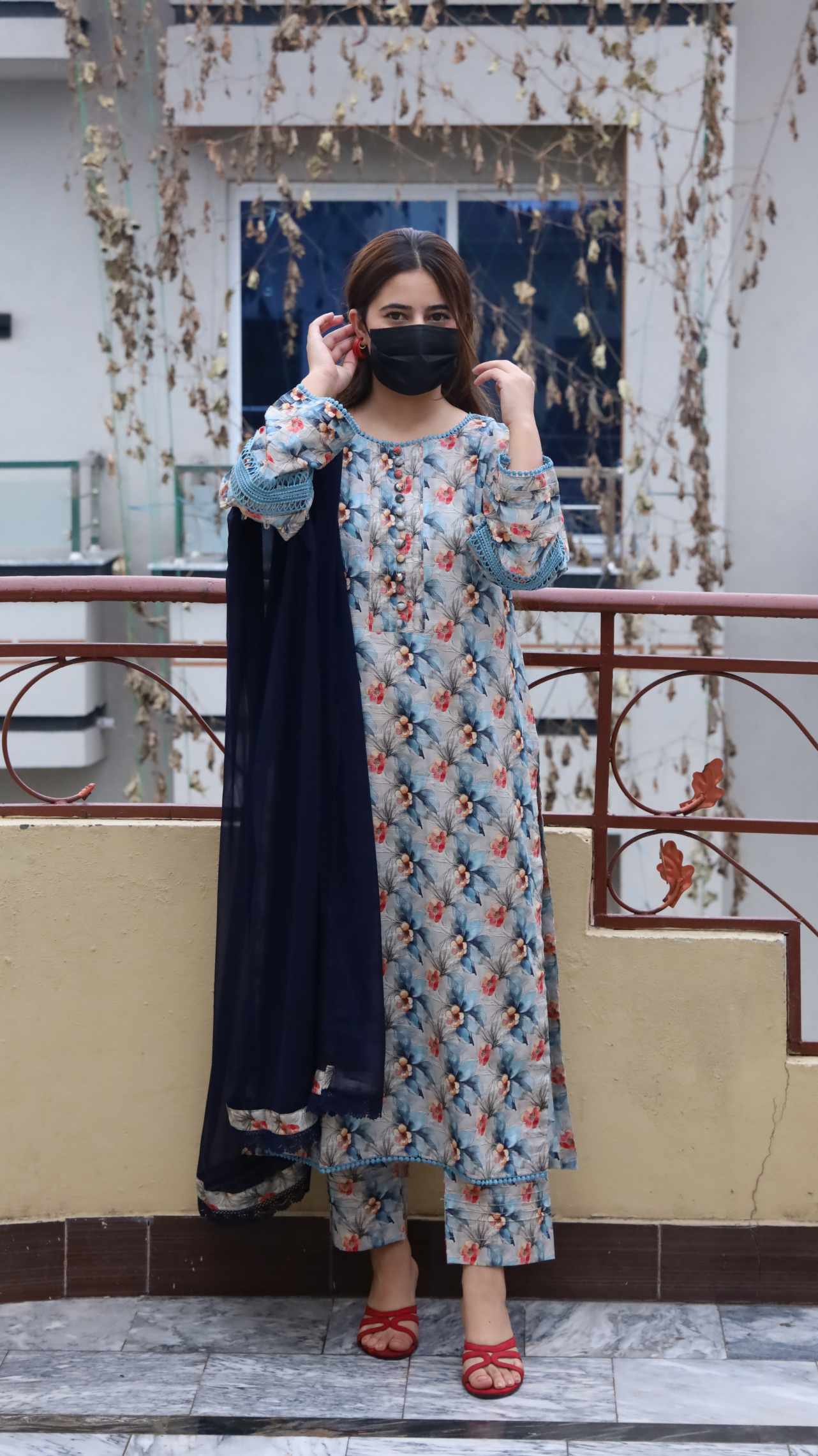 Stay stylish and comfortable with this beautiful women’s Lawn Printed dress. Made from soft, breathable fabric, it keeps you cool and fresh all day. This stylish ensemble features a long-length A-cut shirt with intricate lace detailing on the neck and sleeves. Paired with matching straight-cut trousers, the set offers a seamless, polished look. The elegant prints add a touch of charm, making it ideal for casual outings, gatherings, or everyday wear.