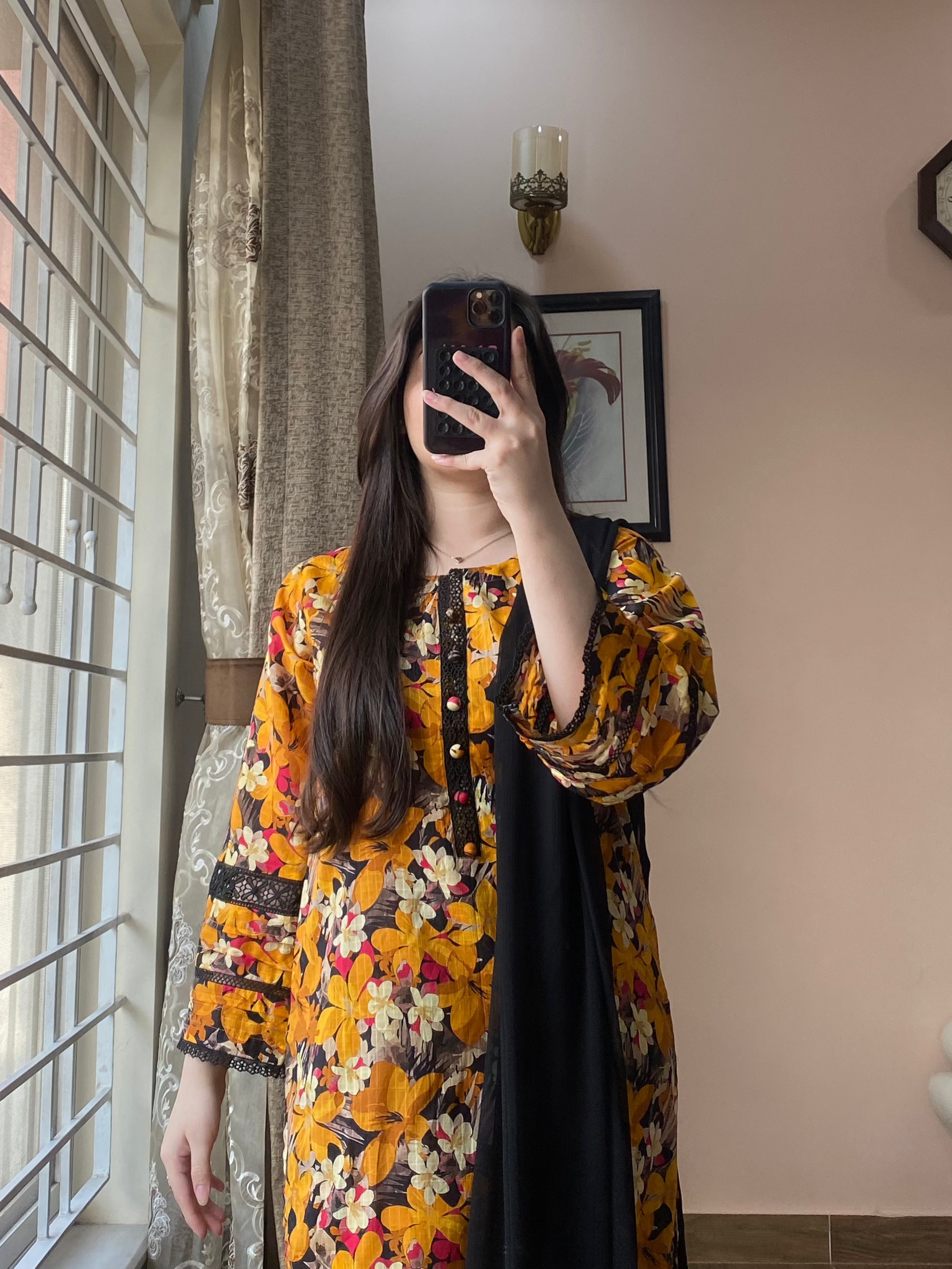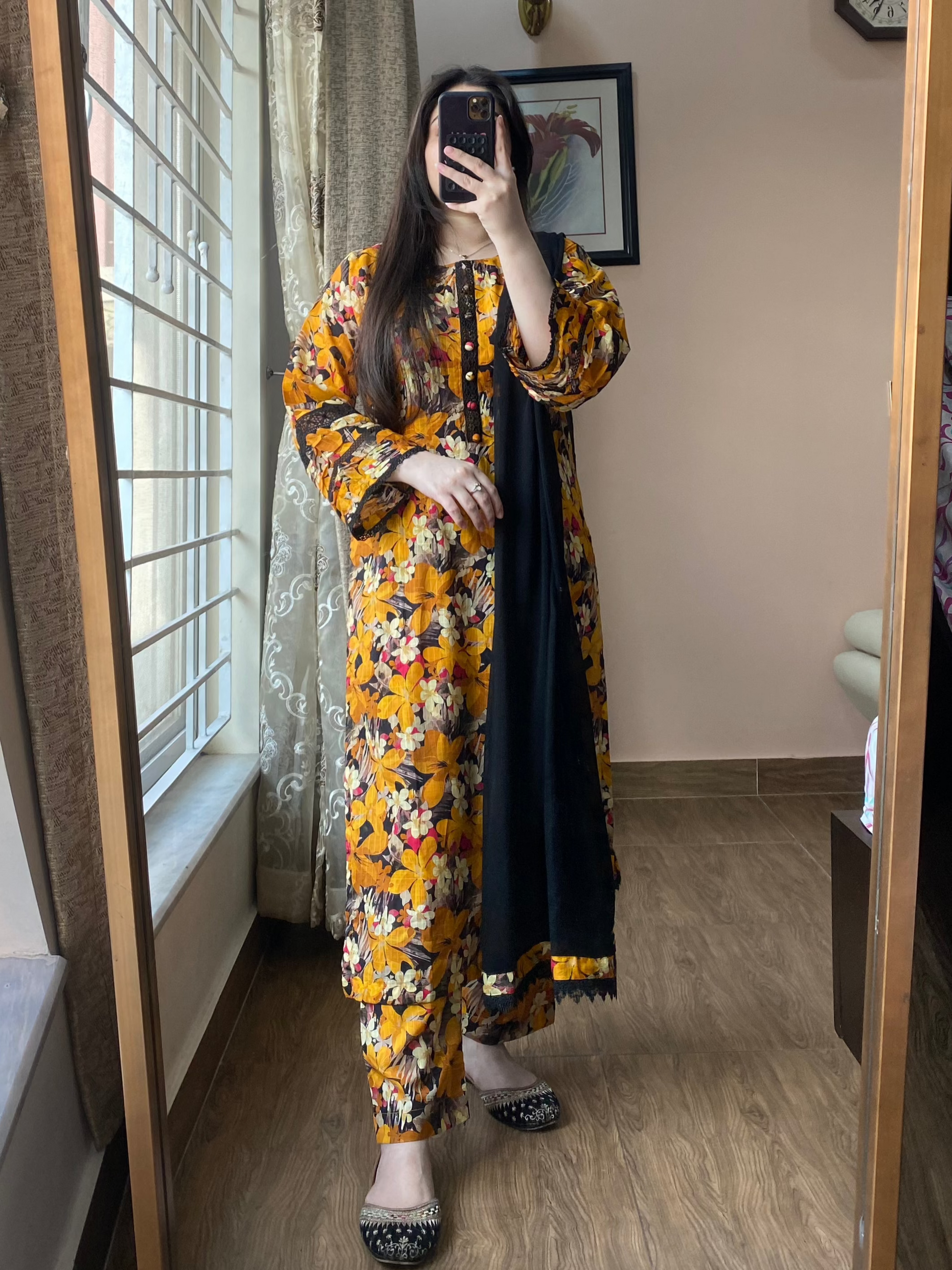 Experience refined elegance with this beautifully designed 3-piece lawn set. The premium lawn shirt features eye-catching printed patterns and delicate neckline button detailing, offering a graceful blend of comfort and style. Paired with a smart-fit lawn shalwar that enhances your silhouette, and a lacework chiffon dupatta that adds a soft, feminine touch—this outfit is perfect for daytime outings or festive gatherings.