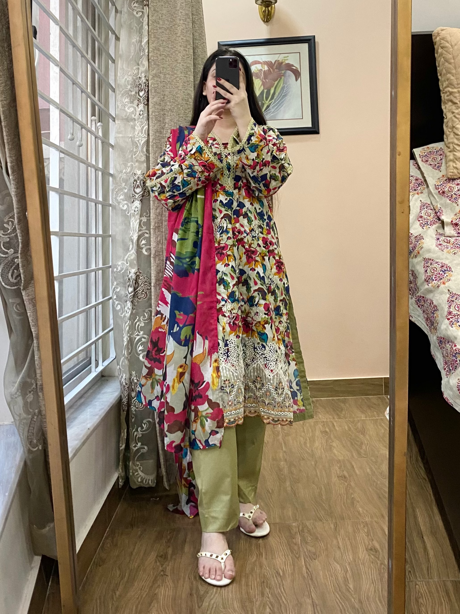 Step into elegance with this stunning luxury embroidered lawn dress, designed for festive occasions like parties. Made from premium Pure Binsaeed Orignal lawn fabric, it is lightweight, breathable, and comfortable to wear all day.