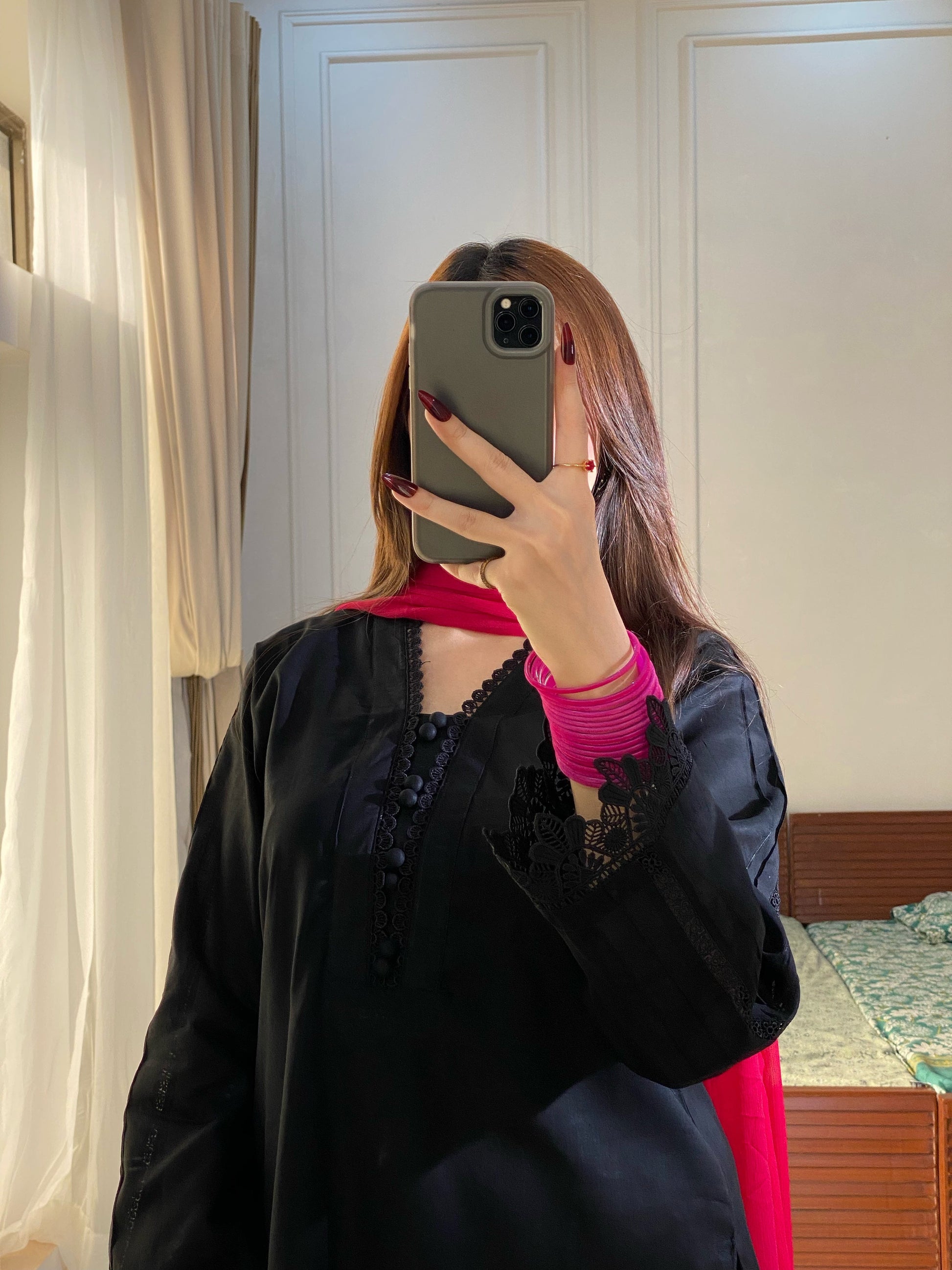 The Chiffon Lacework Dupatta adds an exquisite touch, making this ensemble perfect for any sophisticated occasion.