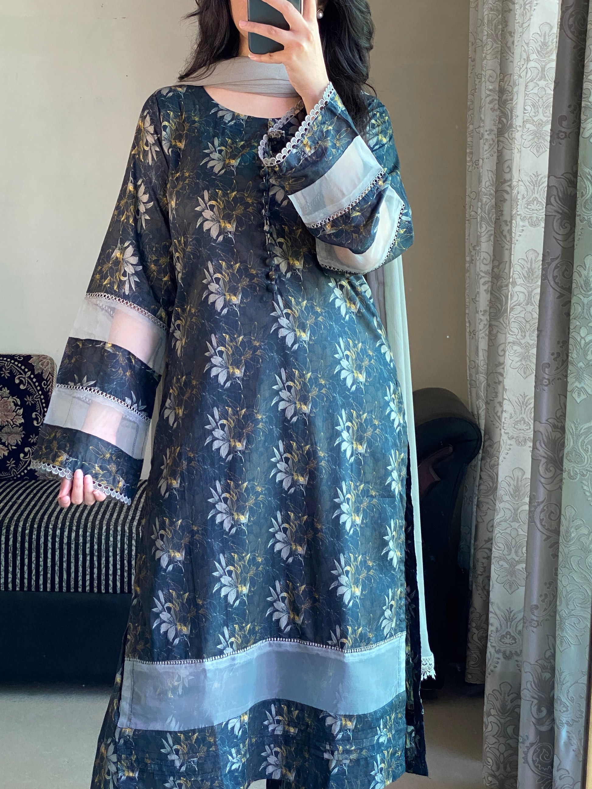 Shirt – Premium Lawn Shirt with elegant Neckline and lass work detailing on sleeves And Shirt.