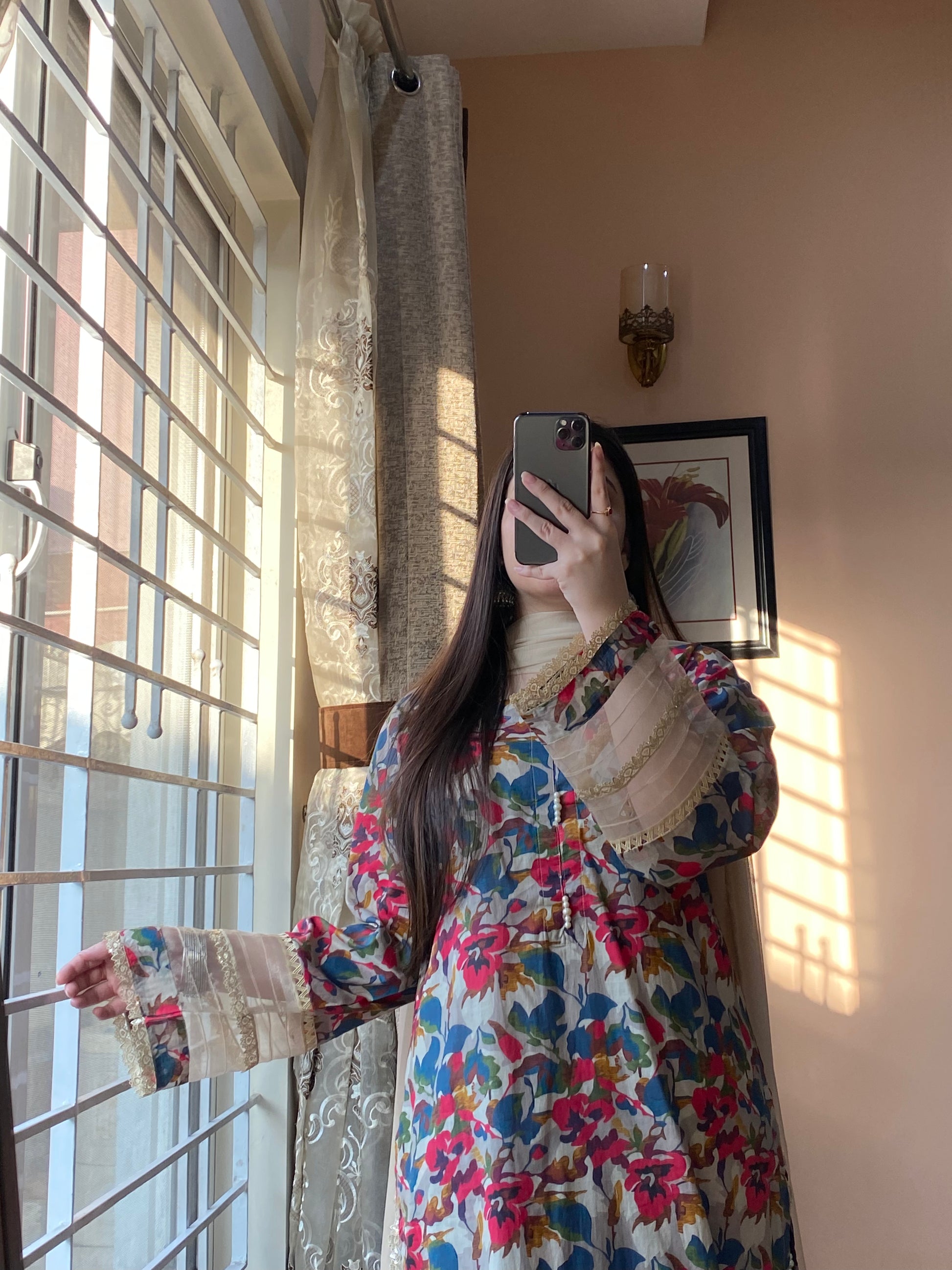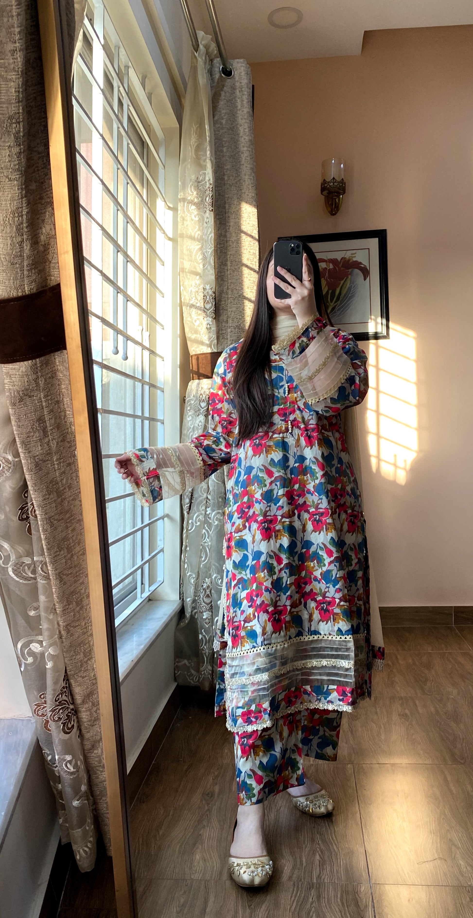 Stay stylish and comfortable with this beautiful women’s Lawn Printed dress. Made from soft, breathable fabric, it keeps you cool and fresh all day. This stylish ensemble features a long-length A-cut shirt with intricate lace detailing on the neck and sleeves. Paired with matching straight-cut trousers, the set offers a seamless, polished look. The elegant prints add a touch of charm, making it ideal for casual outings, gatherings, or everyday wear.