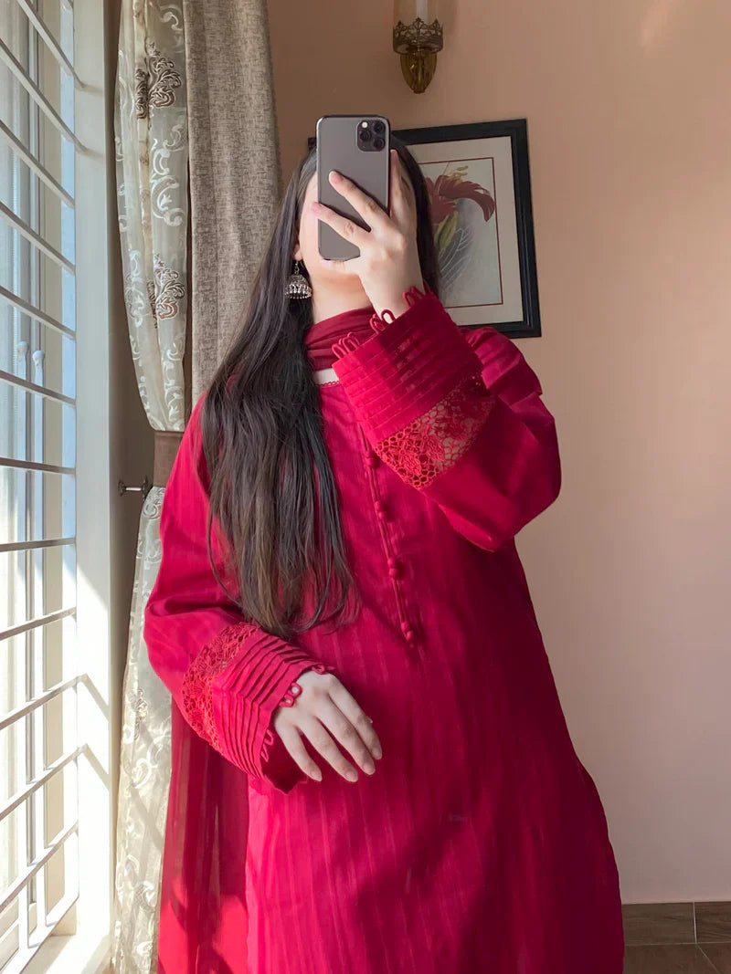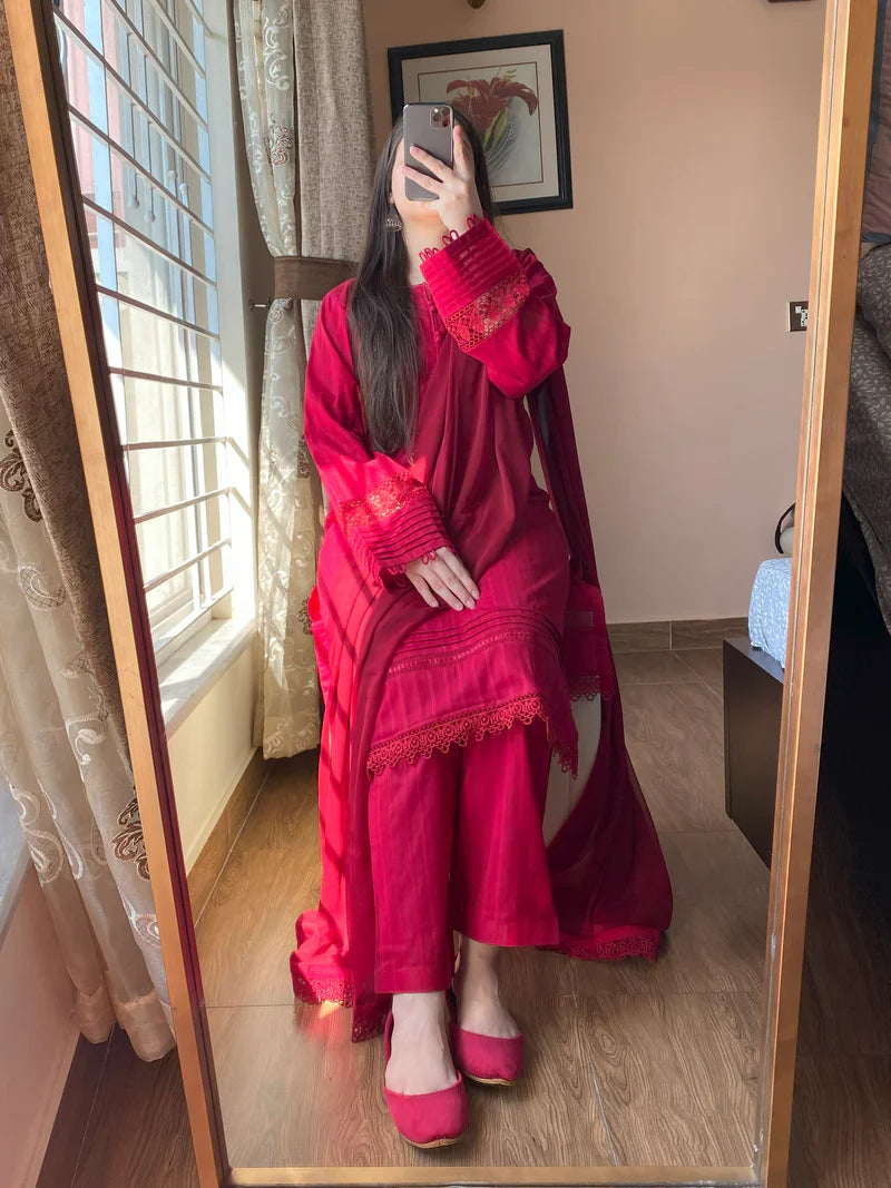 Discover timeless elegance with this 3-piece Lawn suit, thoughtfully designed with intricate detailing and graceful cuts — a perfect choice for the modern woman with a love for tradition.
