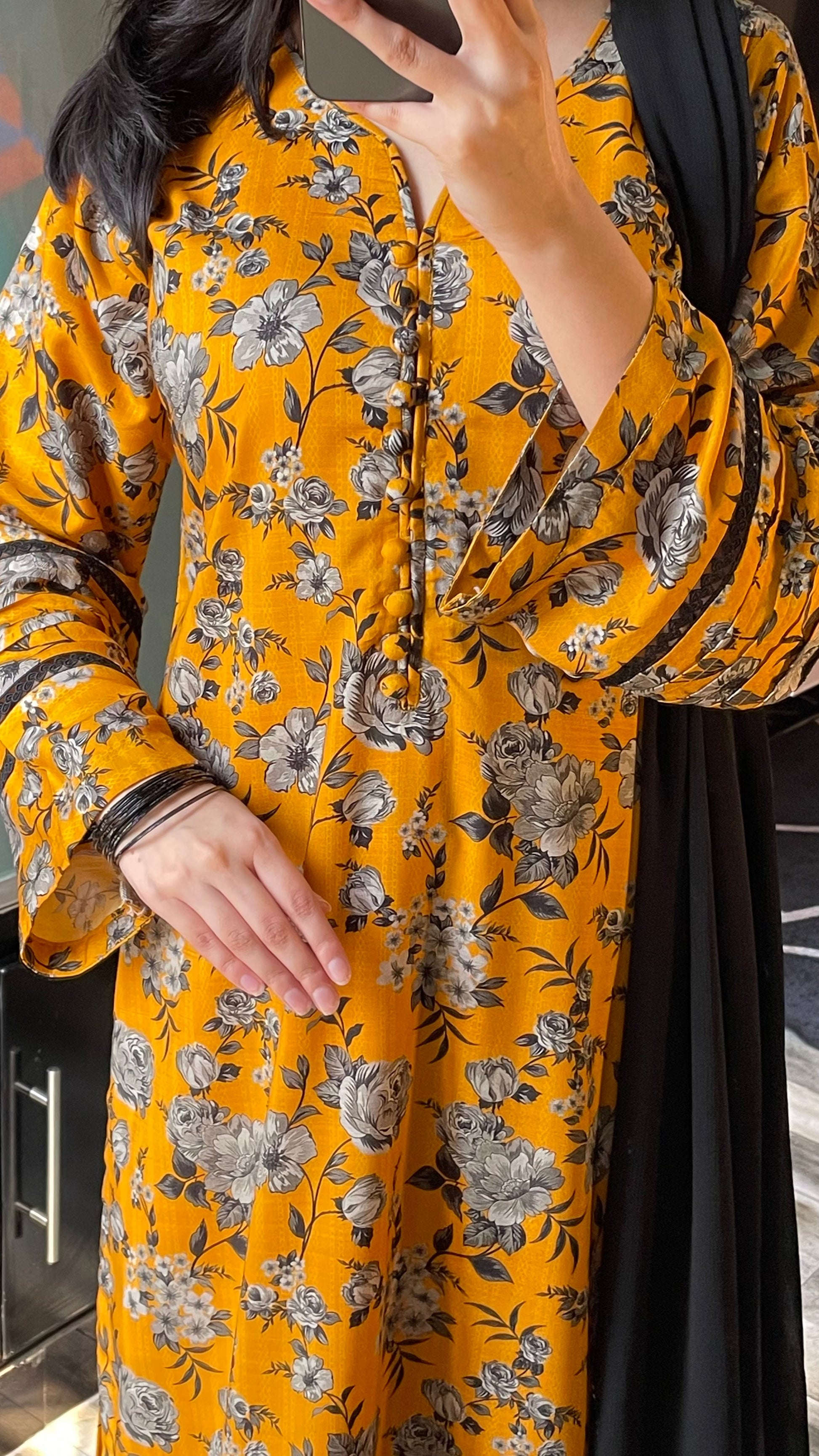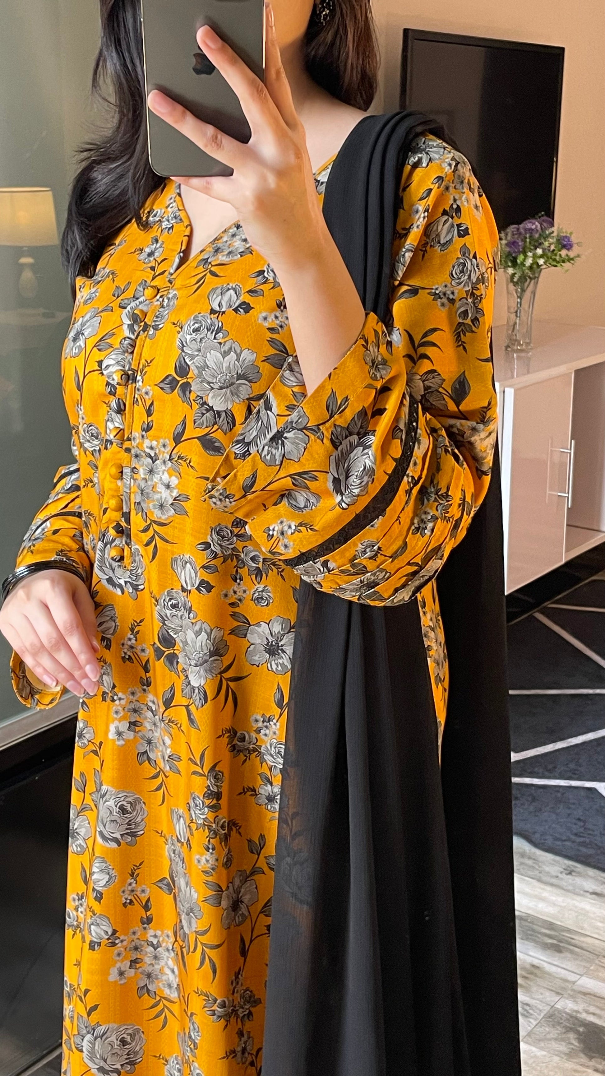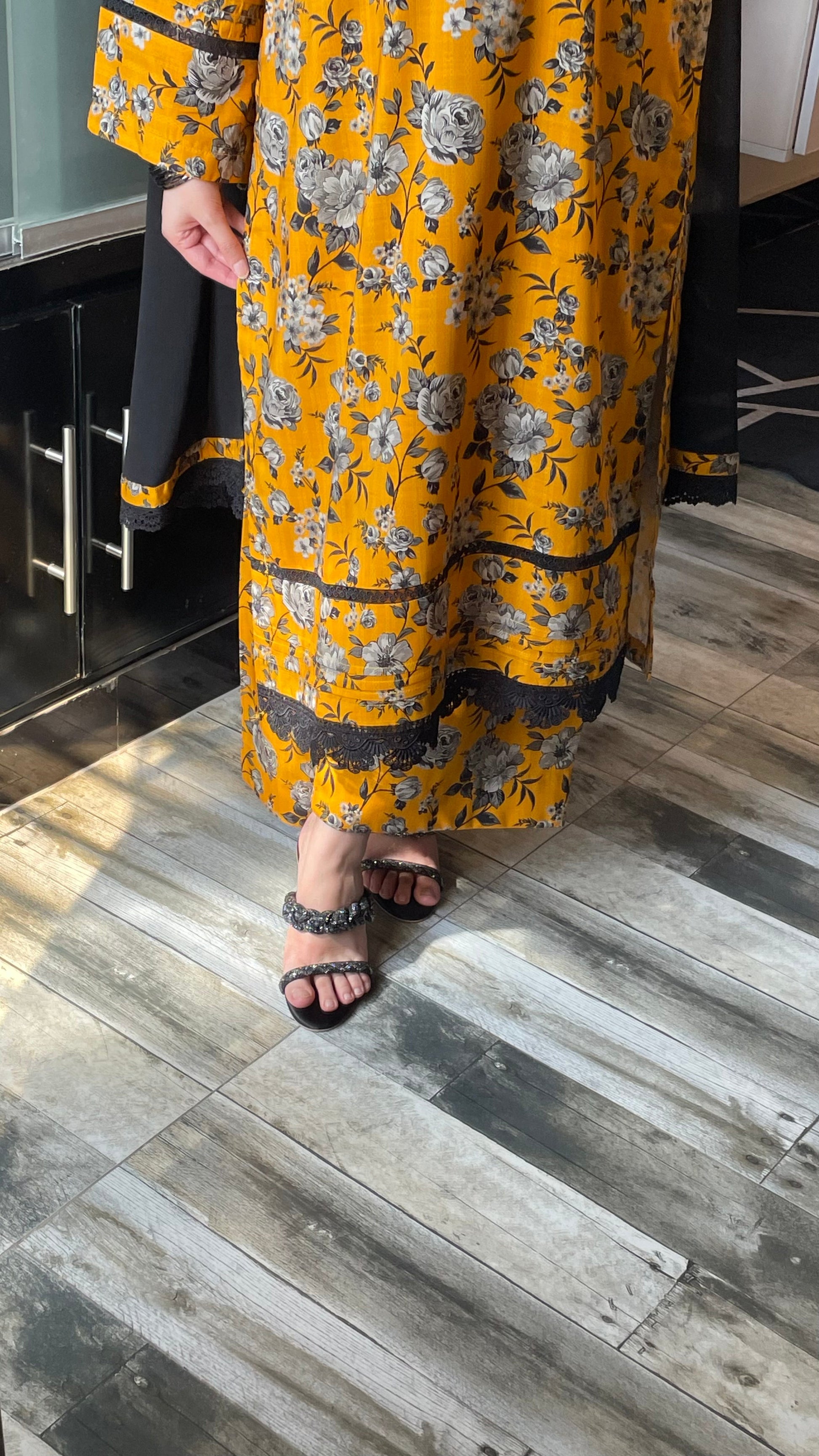Dupatta:A beautifully finished chiffon dupatta adorned with lace work, adding a soft, feminine touch to the ensemble.